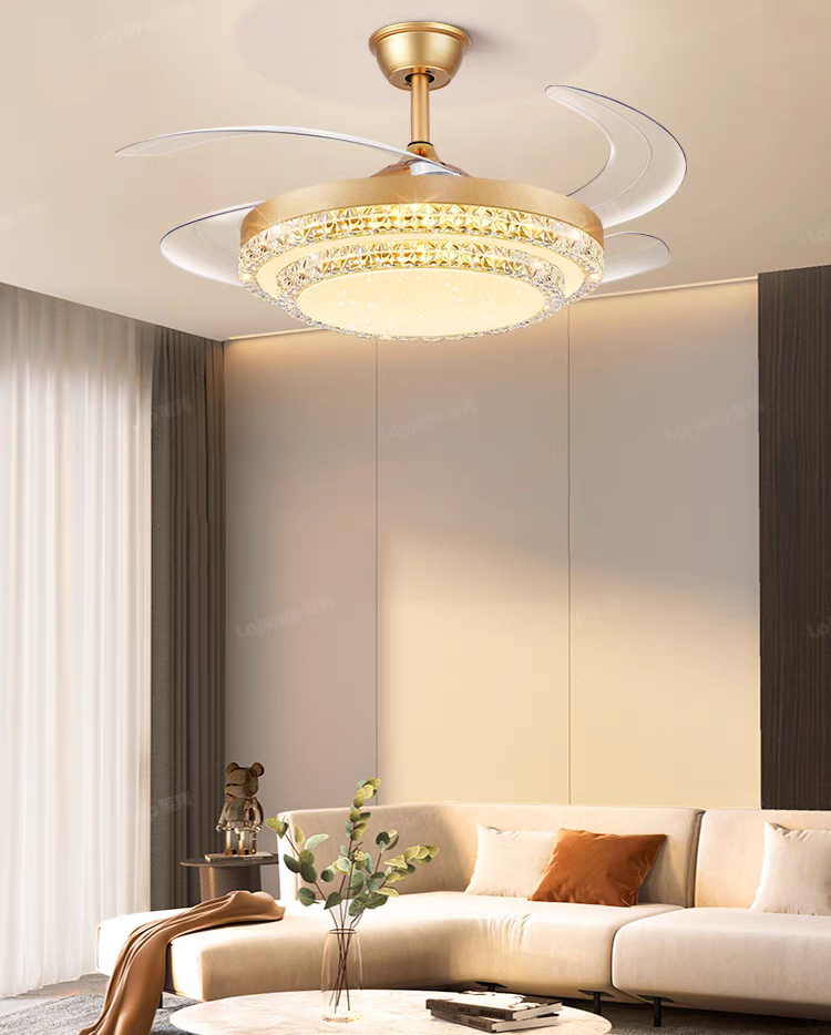 ₵1,899.0021% offSUMMER WIND Luxury Crystal Retractable Ceiling Fan Light + Remote control – 72W – 48 inches – Gold